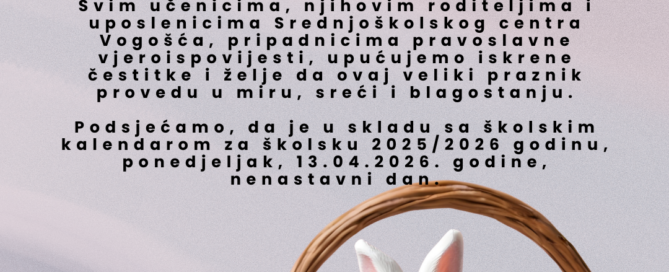 Svim učenicima, njihovim roditeljima i uposlenicima Srednjoškolskog centra Vogošća, pripadnicima [...]